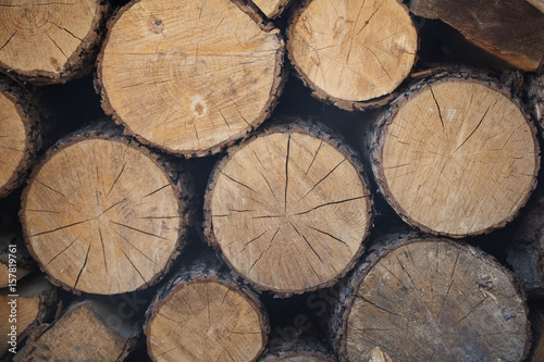 © Volodymyr, Naklejka premium Firewood for the fireplace, barbecue. A man chopping wood for a barbecue. Folded firewood