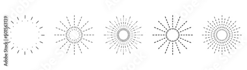 Fototapeta premium Firework explosion, stars, emblem, logo, tag. Vintage sunrise collection. Vector light rays elements. Sunburst set. Vector Illustration
