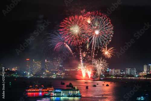 © Maha Heang 245789, Naklejka premium Firework festival at Pattaya Beach, Thailand