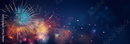 © Wolfilser, Fototapeta premium firework over abstract blue background and text space