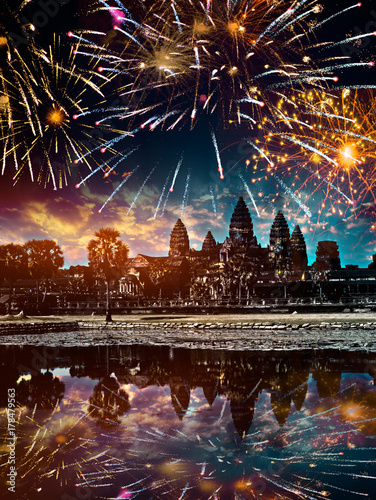 Obraz premium firework over Angkor wat, Siem reap,Cambodia