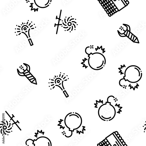 © PikePicture, Naklejka premium Firework Pyrotechnic Seamless Pattern Vector Thin Line. Illustrations