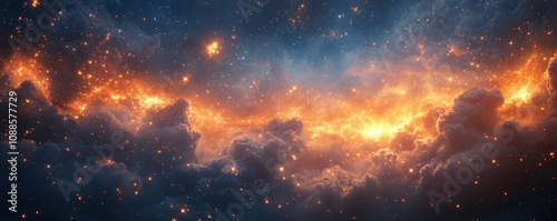 © GRACE, Naklejka premium Firework trails lighting up clouds with glowing embers.
