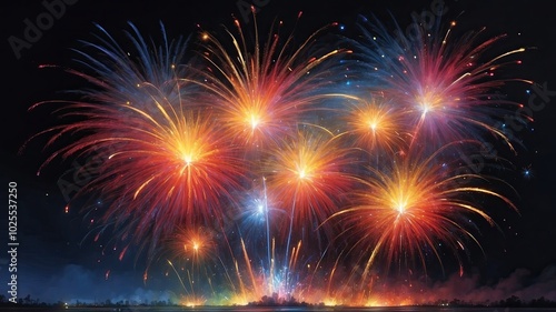 © BONDET LUCKY, Naklejka premium fireworks above the city