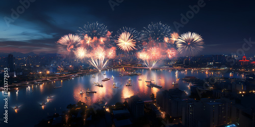 © Sidra, Fototapeta premium Fireworks and Night Sky Celebrations