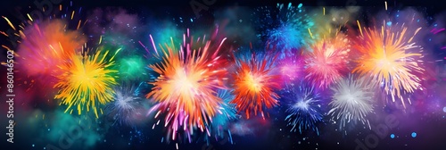 © Serene, Fototapeta premium Fireworks are shown in the sky over a city