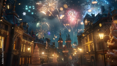 © Gendar SINURO, Obraz premium fireworks background at night party, new year's eve party