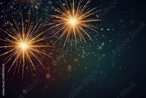 © lampu, Fototapeta premium fireworks background 2025 New Year vector illustration. Flat style abstract, geometric design. Concept for holiday decor, card, poster, banner.