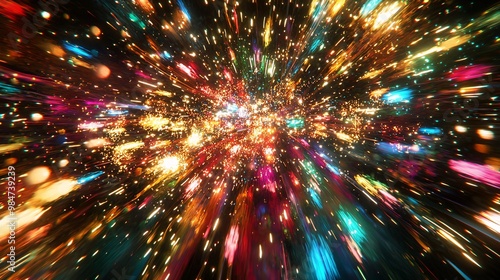 © Beer AI, Naklejka premium Fireworks Bursting in Night Sky with Light Trails