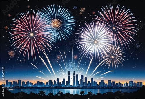Fototapeta premium fireworks display above kuala lumpur malaysia skyline with a city in the background