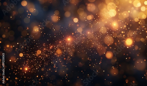 Fototapeta premium Fireworks display on black background, red and gold colors
