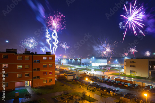 Fototapeta premium Fireworks display on New Years Eve in Pruszcz Gdanski, Poland