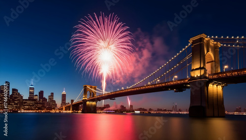 © Iana, Fototapeta premium Fireworks Display Over Bridge and City
