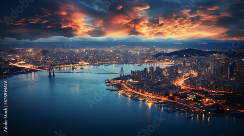 © SANGHYUN, Fototapeta premium fireworks explode high over water. AI generative