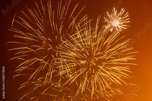 Fototapeta premium Fireworks exploding against a night sky, at Lewes bonfire celebrations