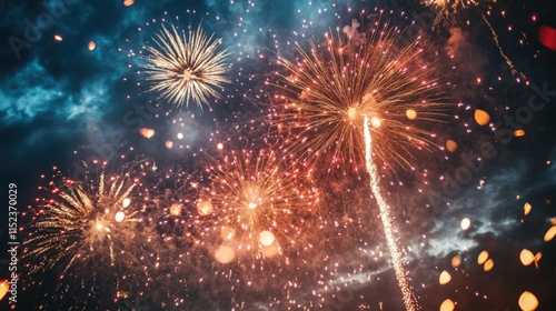 © Ishika, Fototapeta premium fireworks exploding in a night sky