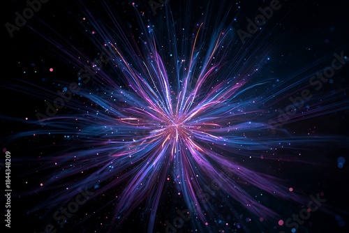© Sidra, Naklejka premium Fireworks forming radiant starbursts of neon blue and pink, shimmering with magical energy