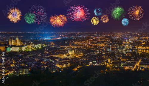 © Nikolai Sorokin, Fototapeta premium Fireworks in Prague - Czech Republic