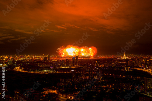 © константин константи, Fototapeta premium fireworks in the center of a big city at night filmed from a drone