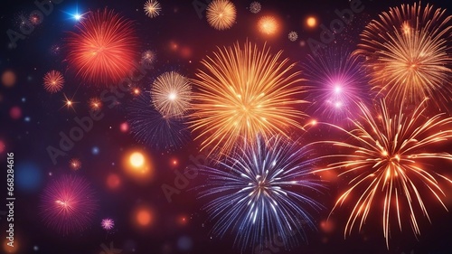 Naklejka premium fireworks in the night sky vector abstract bursting fireworks