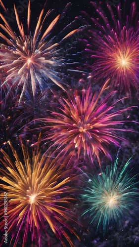 © LooPanda-Pictures, Fototapeta premium Fireworks in the night sky with multi-colored bursts