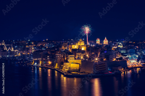 Fototapeta premium Fireworks in Valletta, Night life and cityscape in Valletta