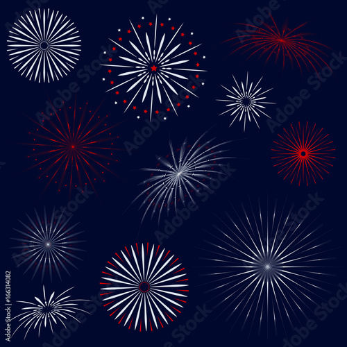© oljgaa29, Naklejka premium Fireworks isolated vector set on dark blue background