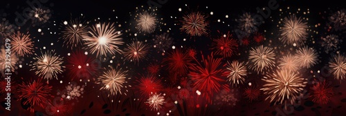 Fototapeta premium Fireworks lit up in the sky with black background,