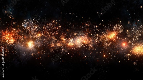 Fototapeta premium Fireworks outbreaks set against dark night sky
