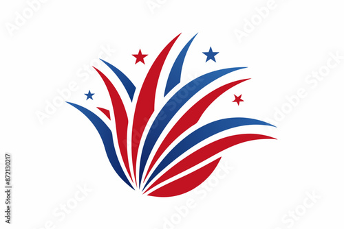 © Chayon Sarker, Obraz premium Fireworks red white and blue colors solid background white background