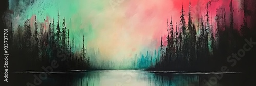 © Bundi, Obraz premium Fireworks reflecting on the water in shades of red and green
