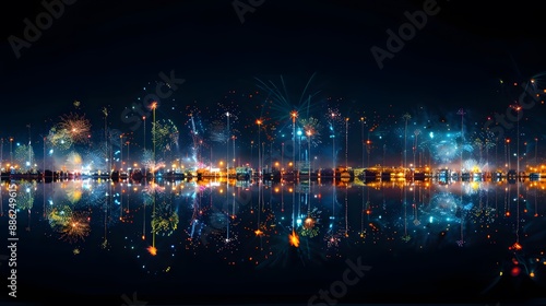 Fototapeta premium Fireworks reflecting over the night sky, Bauhaus style