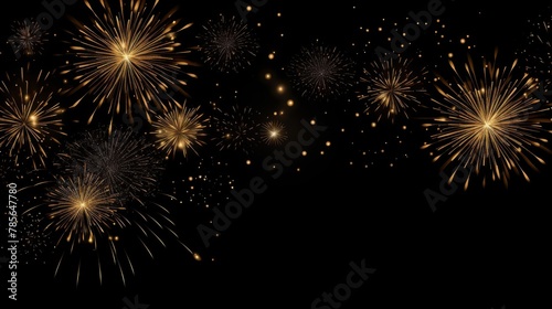 Naklejka premium Fireworks shining sparks. Fireworks explosions object for festival background. Celebrate Lighting effect isolated illustration. High quality photo