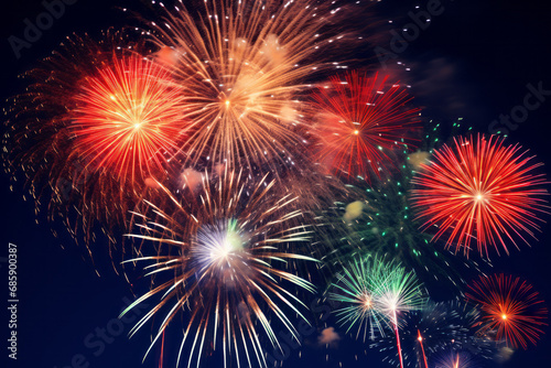Naklejka premium Fireworks shoot up like rockets into the night sky at summer festival event...