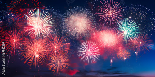 Fototapeta premium Fireworks Spectacular. Vibrant Fireworks Lighting up the Night Sky