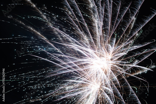 Naklejka premium fireworks to welcome the new year, light flowers in the sky, holiday celebration, light painting