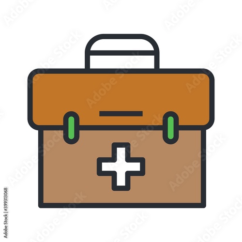 © Elmin, Obraz premium First aid box icon in flat design style.
