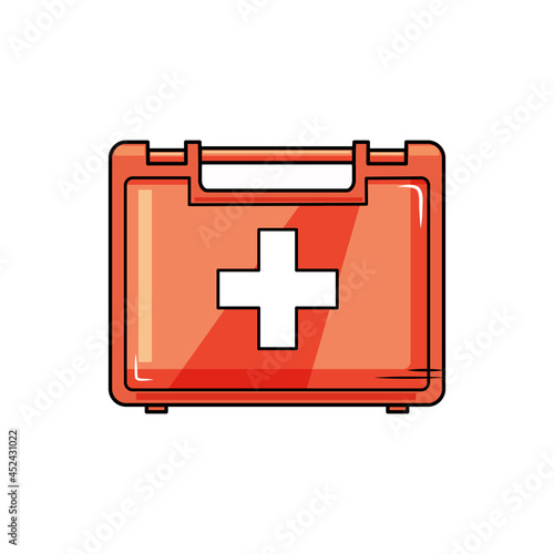 Obraz premium First aid box on a white isolated background. Vector illustration of a cartoon