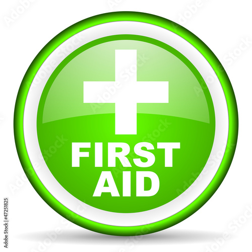 Obraz premium first aid green glossy icon on white background
