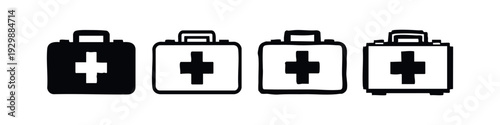 Obraz premium First Aid Kit and Emergency Medical Box Icons Set in Flat Design