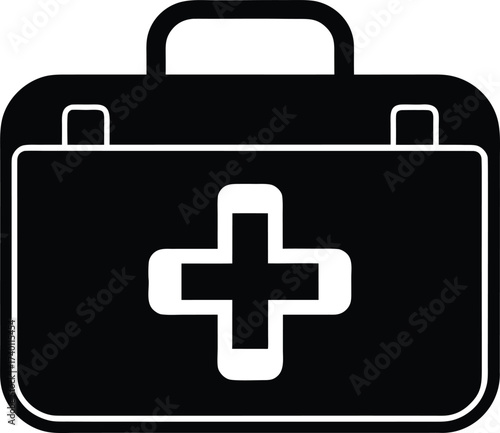 © JhumaRaniDas, Fototapeta premium First aid kit at site silhouette vector art illustration