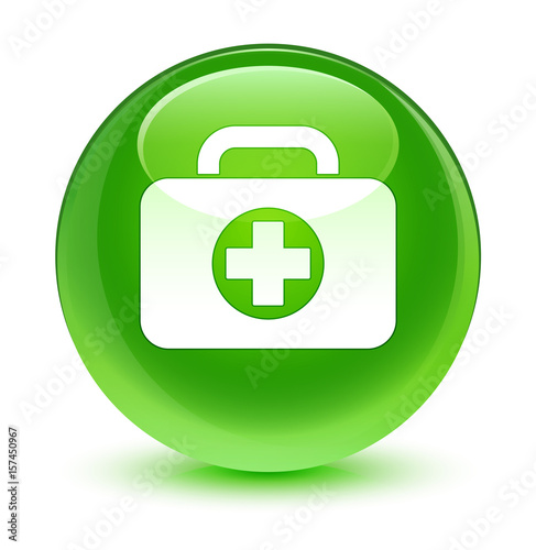 © FR Design, Fototapeta premium First aid kit bag icon glassy green round button
