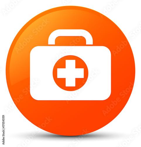 Fototapeta premium First aid kit bag icon orange round button