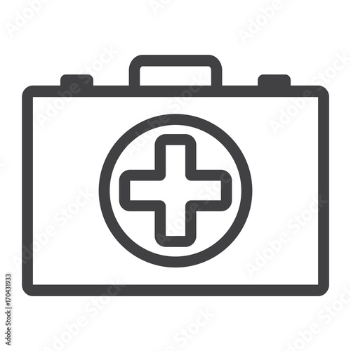 Fototapeta premium First aid kit box line icon, medicine and healthcare, medical case sign vector graphics, a linear pattern on a white background, eps 10.