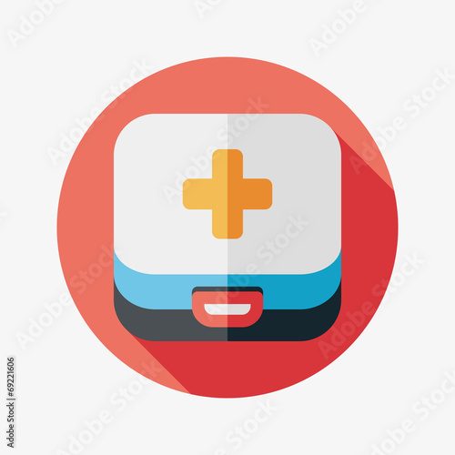 © eatcute, Fototapeta premium first aid kit flat icon with long shadow