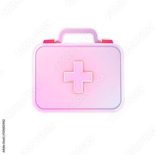 © Tark, Obraz premium First aid kit holographic 3D icon. neon symbol vector illustration isolated on white background. Generative AI