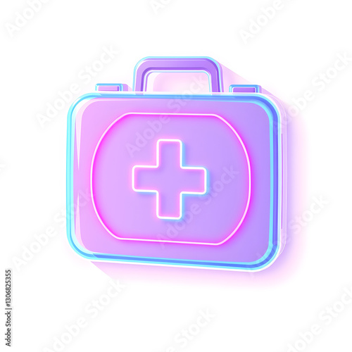 © Tark, Obraz premium First aid kit holographic 3D icon. neon symbol vector illustration isolated on white background. Generative AI