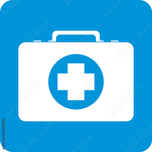 Fototapeta premium first aid kit icon blue rectangle on white background