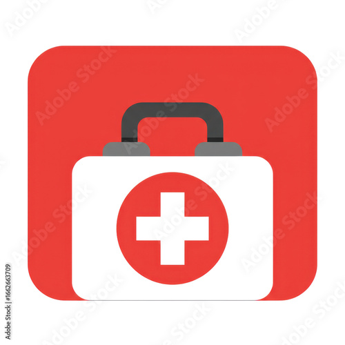 © Shanza, Obraz premium First aid kit icon in red square isolated PNG with Transparent Background