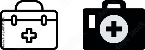 Obraz premium "First Aid Kit Icon with Medical Cross and Supplies Vector Design"